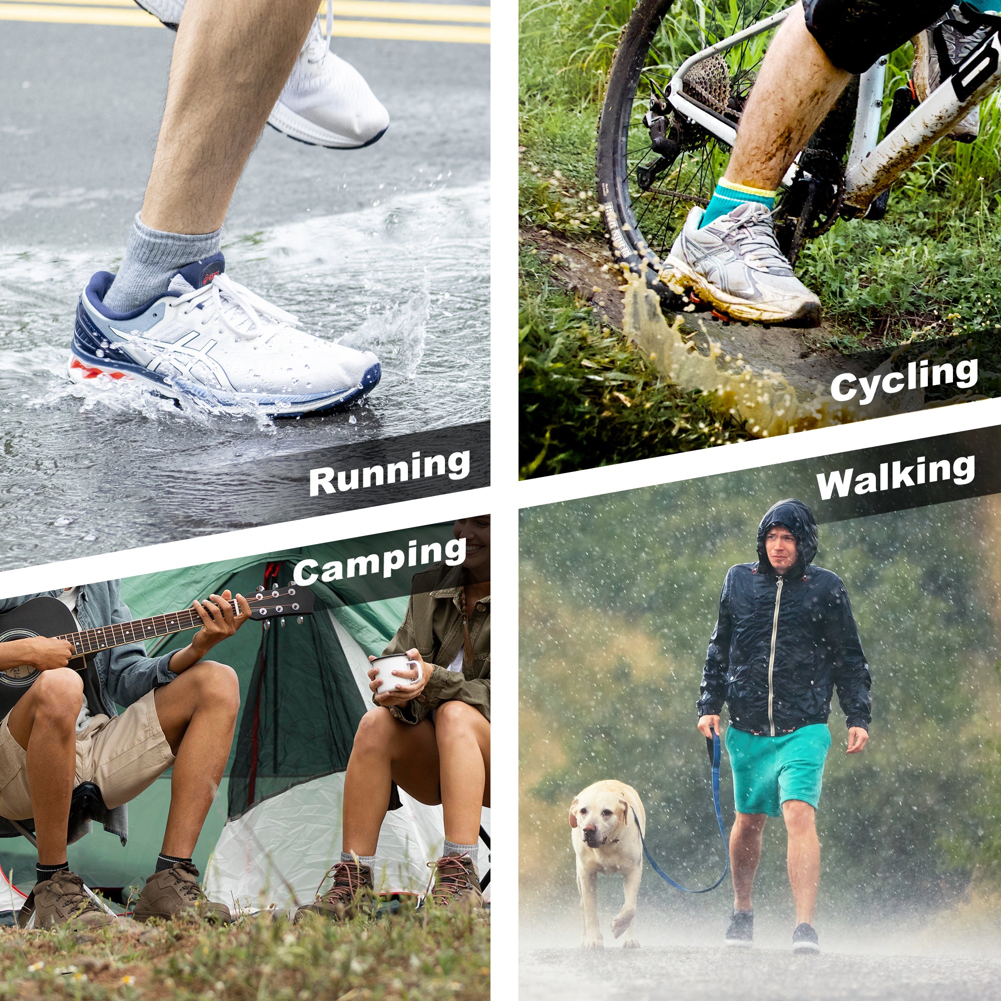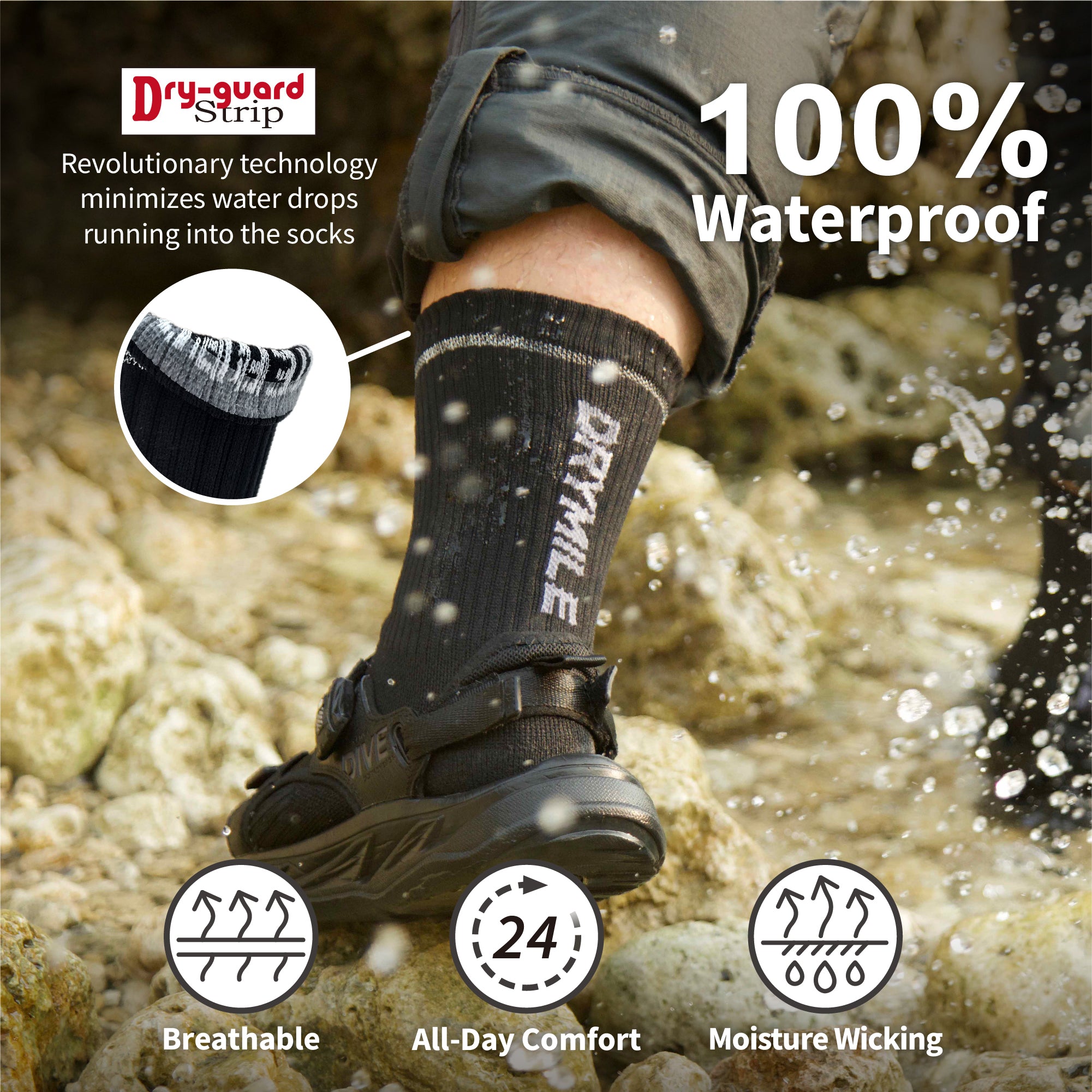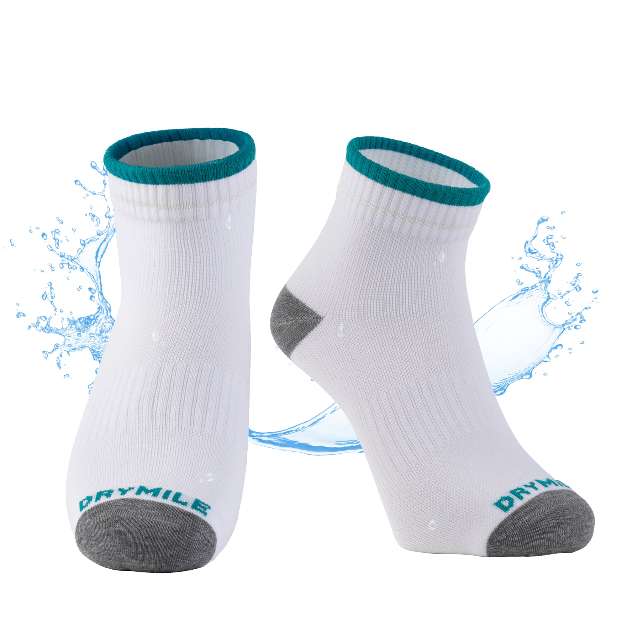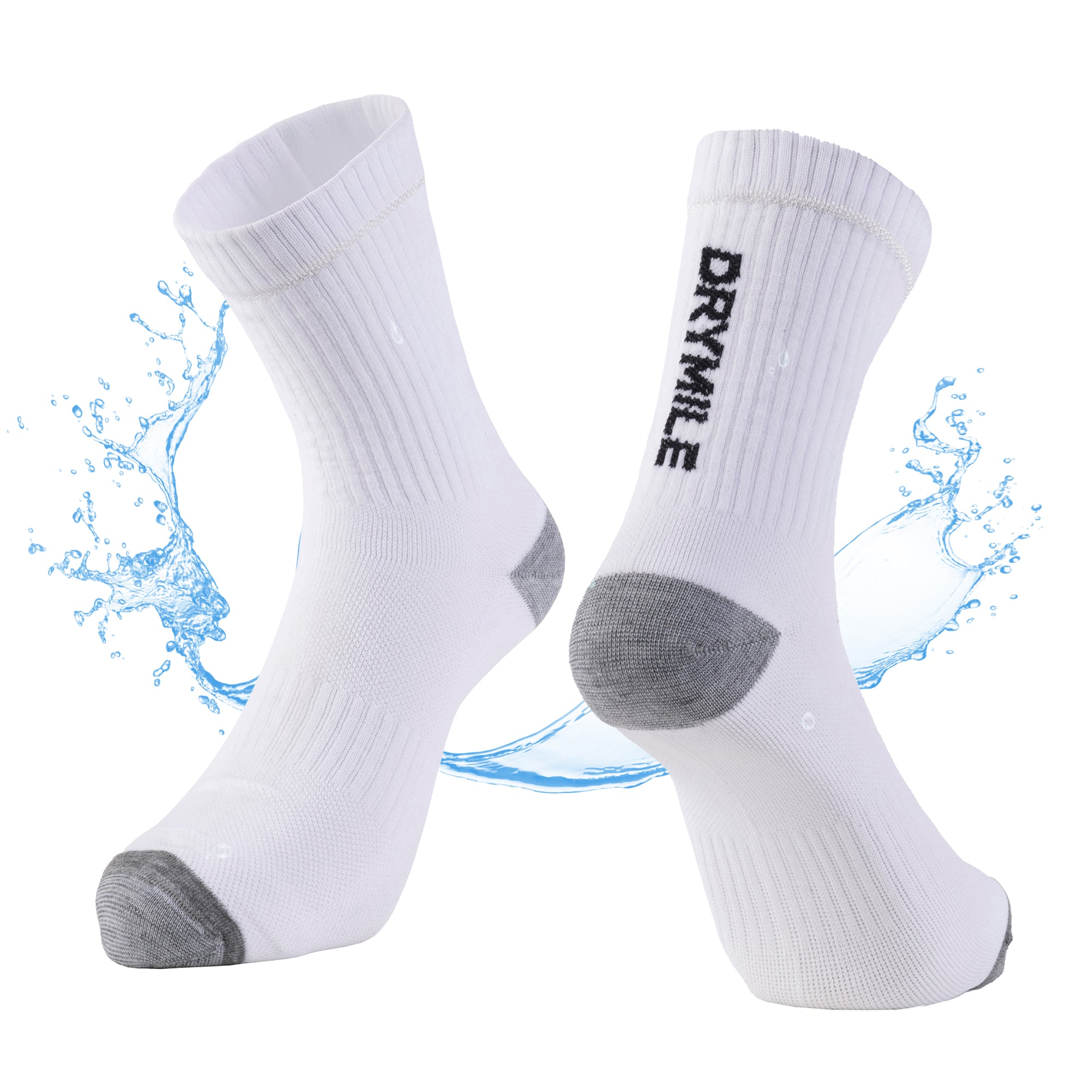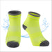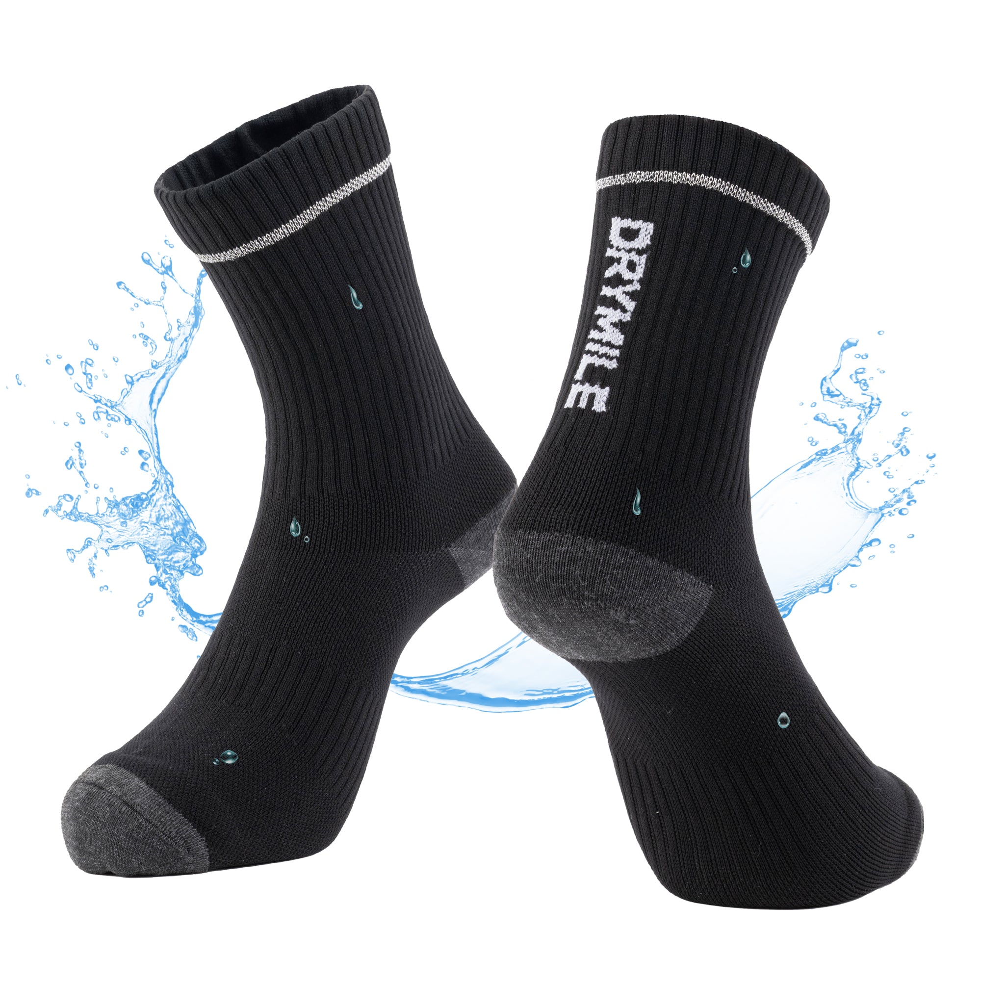 ACTIVE Drymile waterproof socks are perfect for biking, running, and any outdoor exercise activities. Made with special moisture-wicking yarn that is slim, thin, breathable, and anti-odor. Extra cushion at the toe and heel for comfort. Ankle-high with dry guard strip protects from water running down from the leg, so your feet are always dry.