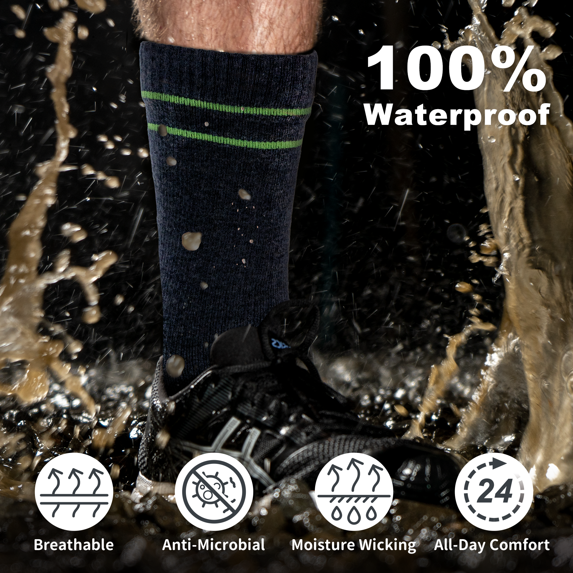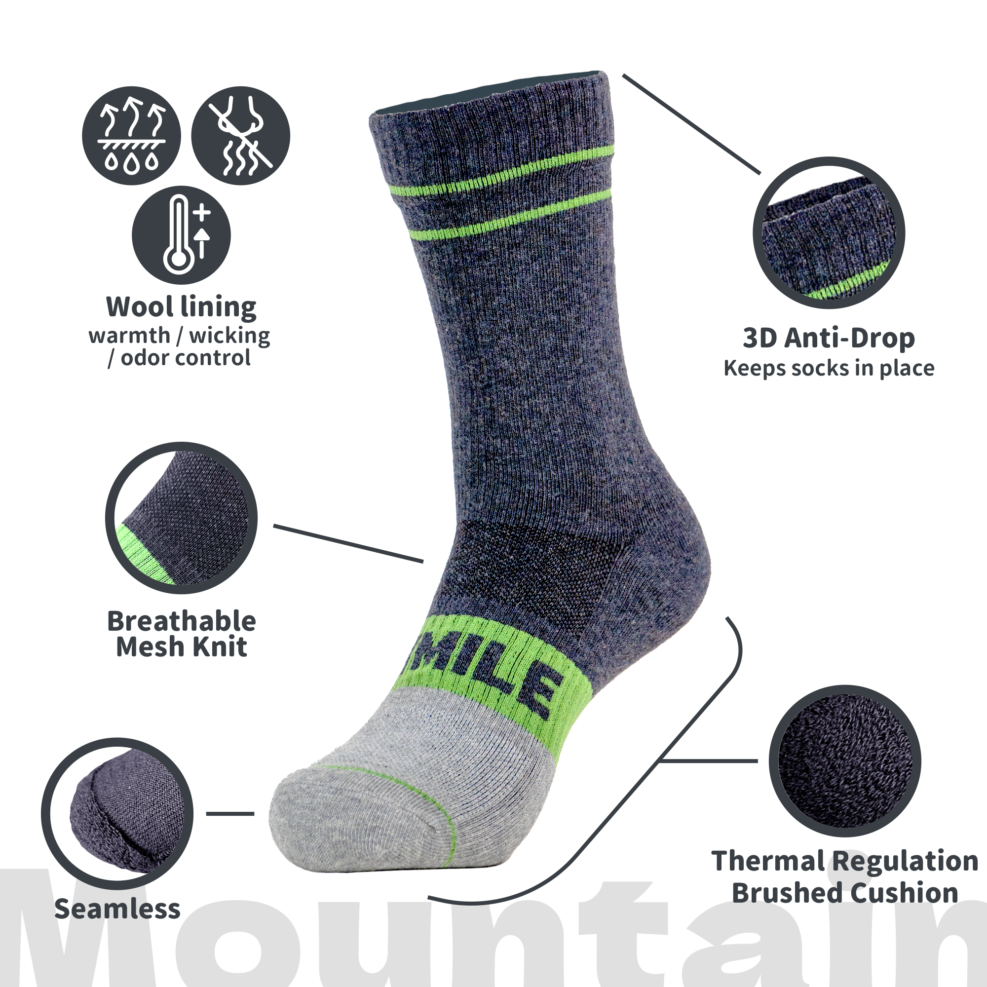 MOUNTAIN Drymile 防水襪為中長款,內層採用特殊的羊毛混紡面料,可提供最佳保暖效果。透氣和防臭,同時防水,讓您為任何天氣做好準備。非常適合山地自行車、越野跑、滑雪、秋季/冬季跑步以及一般的寒冷天氣。